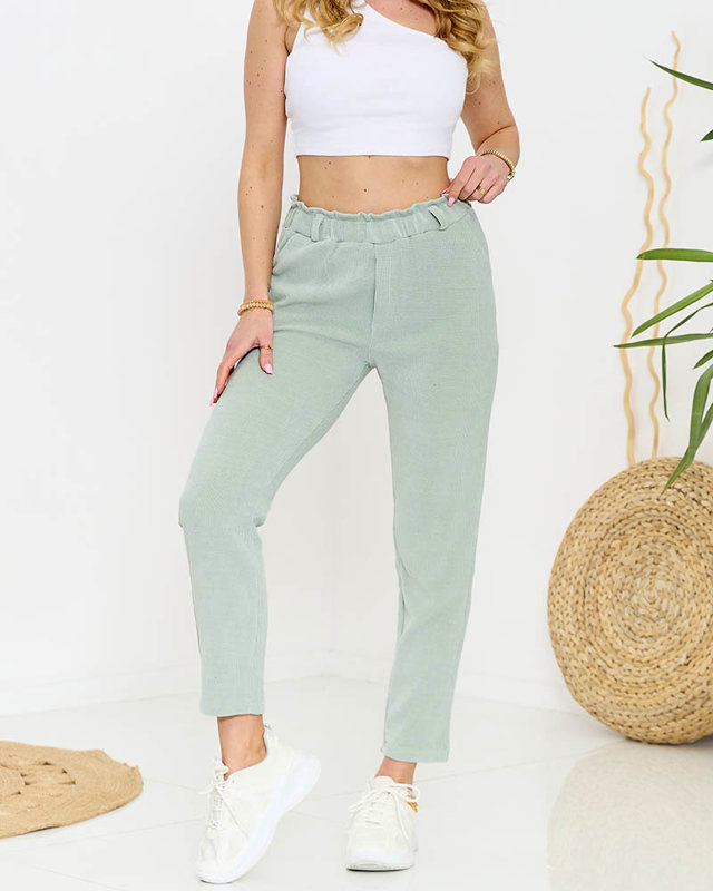 Широкие женские вельветовые брюки зеленого цвета - Одежда