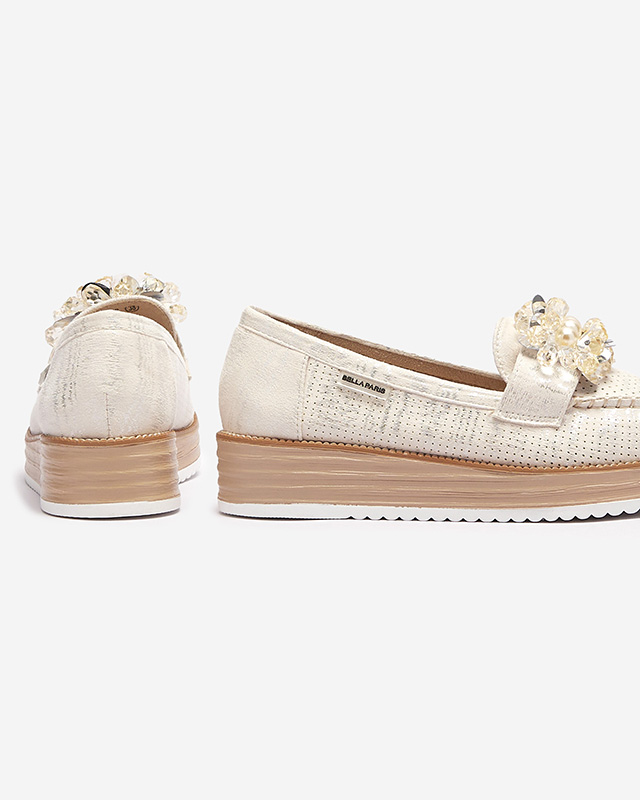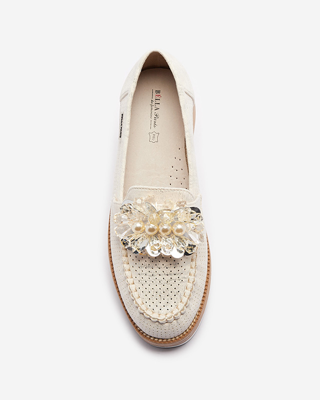 Кремовые женские мокасины с декоративными кристаллами Liscutio- Footwear