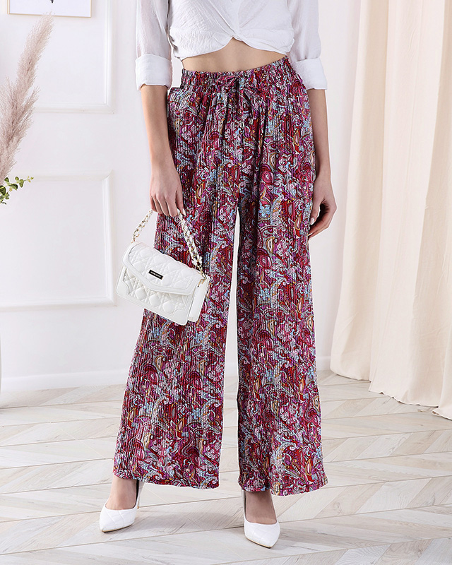Выкройка женских брюк с широкими штанинами красного цвета - Одежда