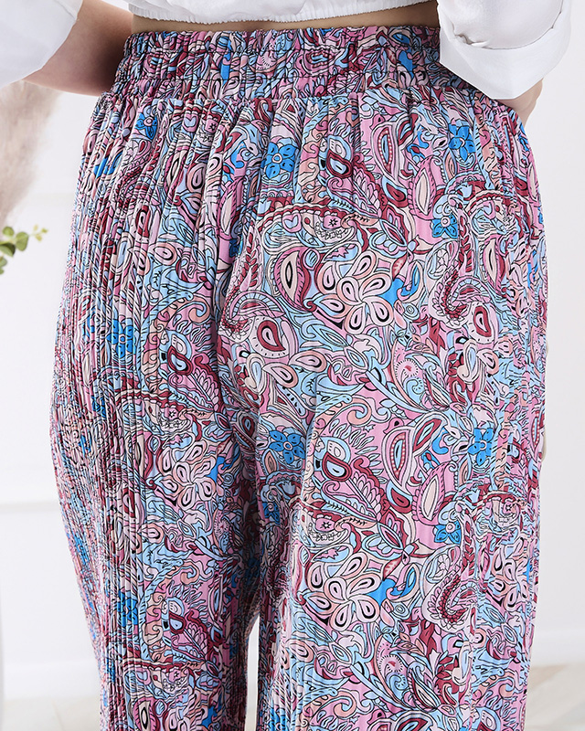 - Широкие брюки из ткани с широкими штанинами. Модель выполнена из легкой и воздушной ткани и имеет резинку и штанины на талии. Брюки украшены красочным принтом. Идеальный вариант для лета! ПРИМЕЧАНИЕ: Точность измерения (+/-) 1 см.