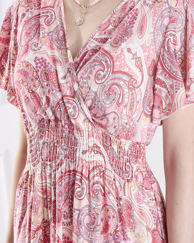 Узорчатое розовое женское платье-миди Одежда