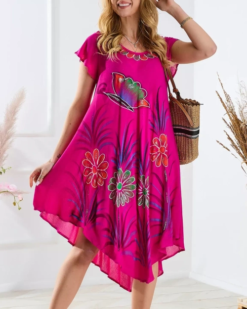 Фуксия женское пляжное покрывало плательного типа с цветочным принтом - Одежда