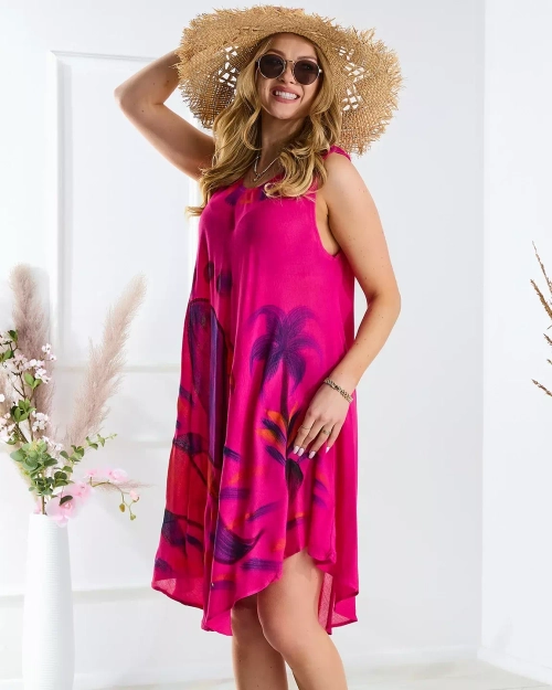 Пляжное платье-юбка цвета фуксии с красочным принтом - Одежда