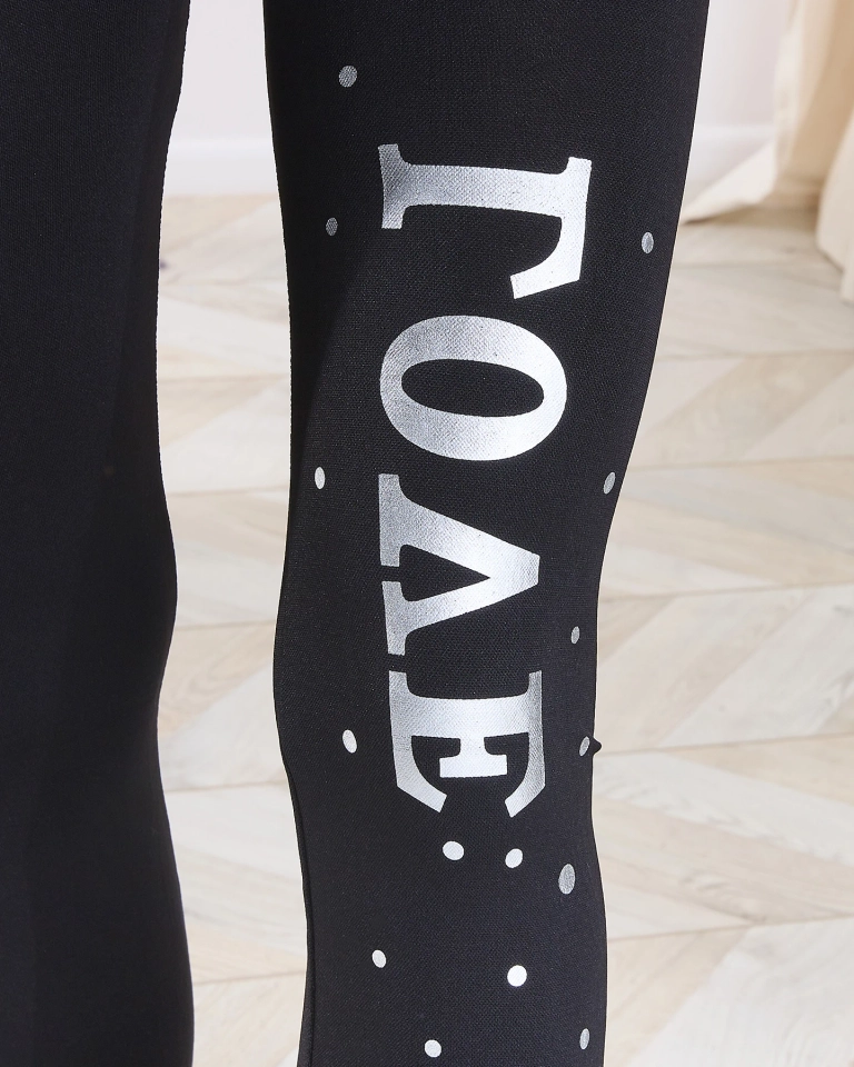 Черный женский спортивный комплект с серебряной надписью LOVE- Одежда
