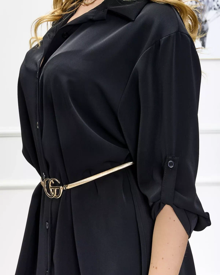 Черный Женское платье-рубашка с пуговицами - Одежда
