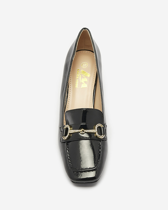 - Оригинальные женские туфли-мокасины, выполненные из лакированной экокожи. Стелька также изготовлена из экокожи. Квадратный носок с золотым орнаментом с цирконами добавляет им очарования. Удобная модель, на стойке. Must have этого сезона!
