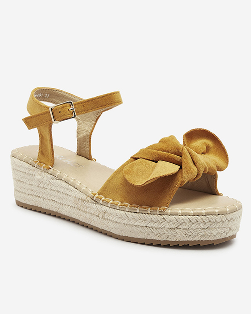 Горчичные женские сандалии на низком каблуке с бантом Mosinta - Обувь
