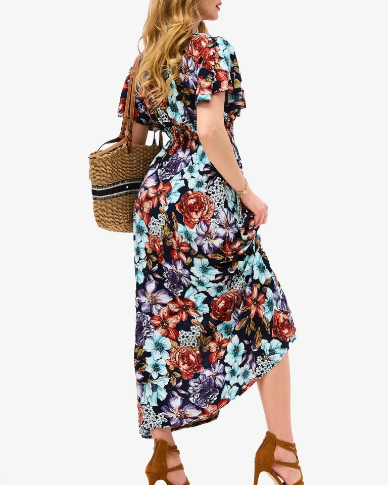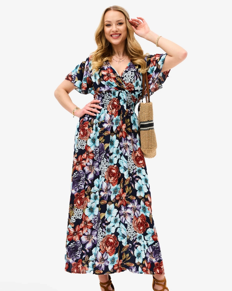Цветочное темно-синее длинное женское платье - Одежда