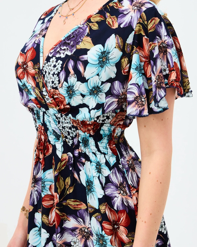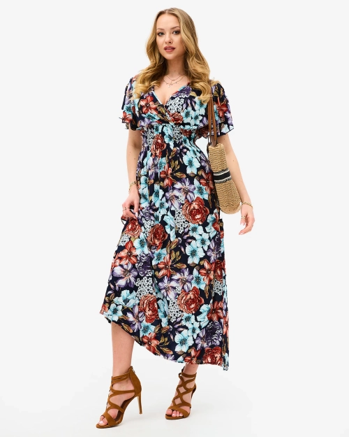 • Легкое женское платье длины миди, выполненное из мягкой цветочной ткани. Изделие с вырезом-конвертом, имеет короткие рукава и широкую резинку, подчеркивающую талию. Незаменимый элемент вашего гардероба! ПРИМЕЧАНИЕ: Точность измерения (+/-) 1 см.