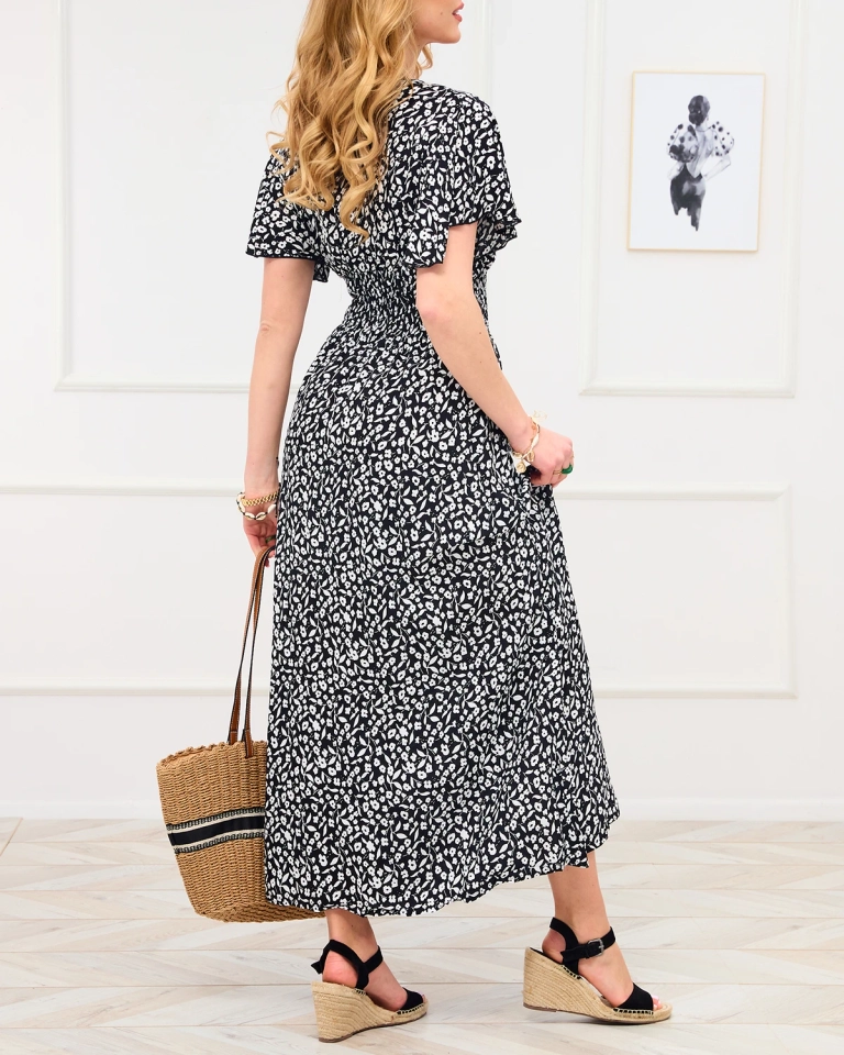- Женское узорчатое платье-макси из легкой и воздушной ткани. Модель с V-образным вырезом, имеет короткие рукава и эластичный пояс, подчеркивающий талию. Отличный вариант для лета! ПРИМЕЧАНИЕ: Точность измерения (+/-) 1 см.