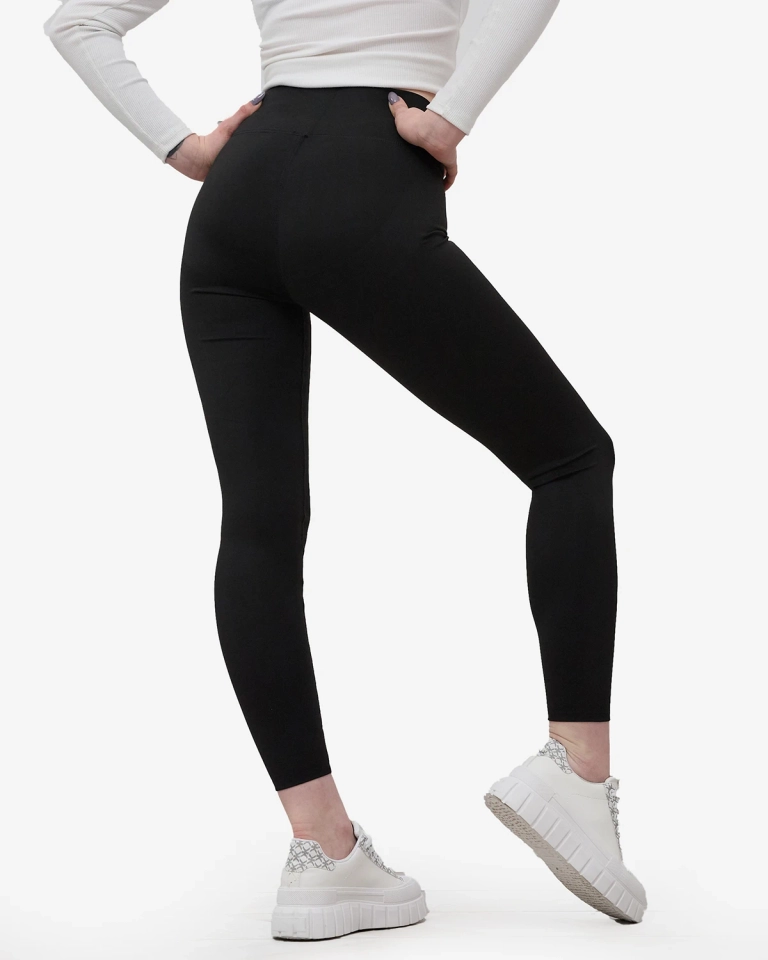 Женские леггинсы с широким эластичным поясом черного цвета - Одежда