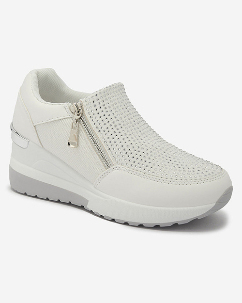 Белые женские спортивные туфли на каблуке-платформе, украшенные цирконами Martela - Обувь