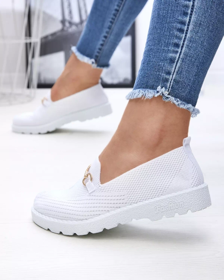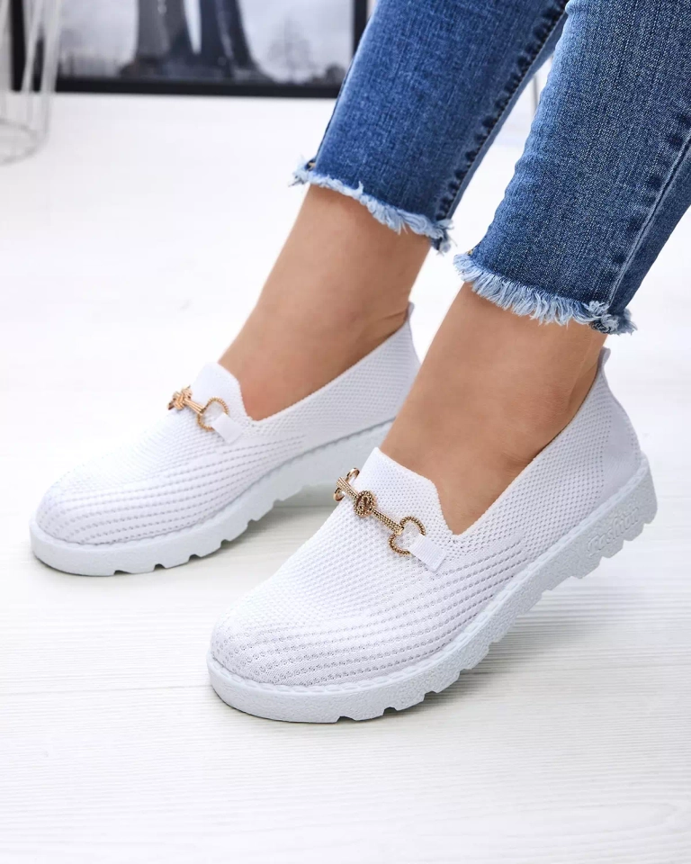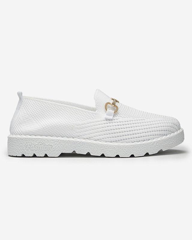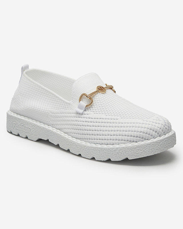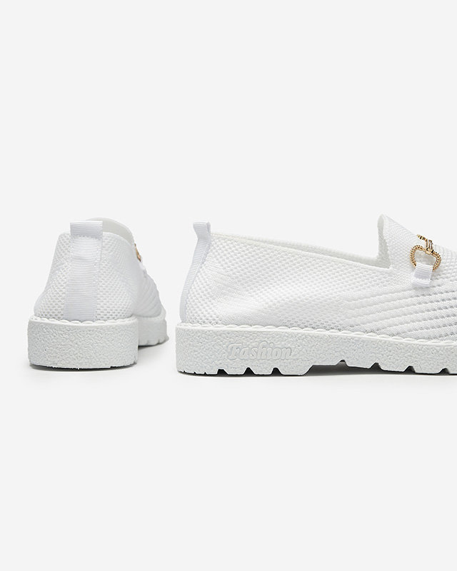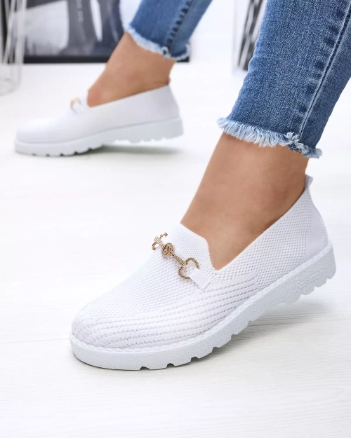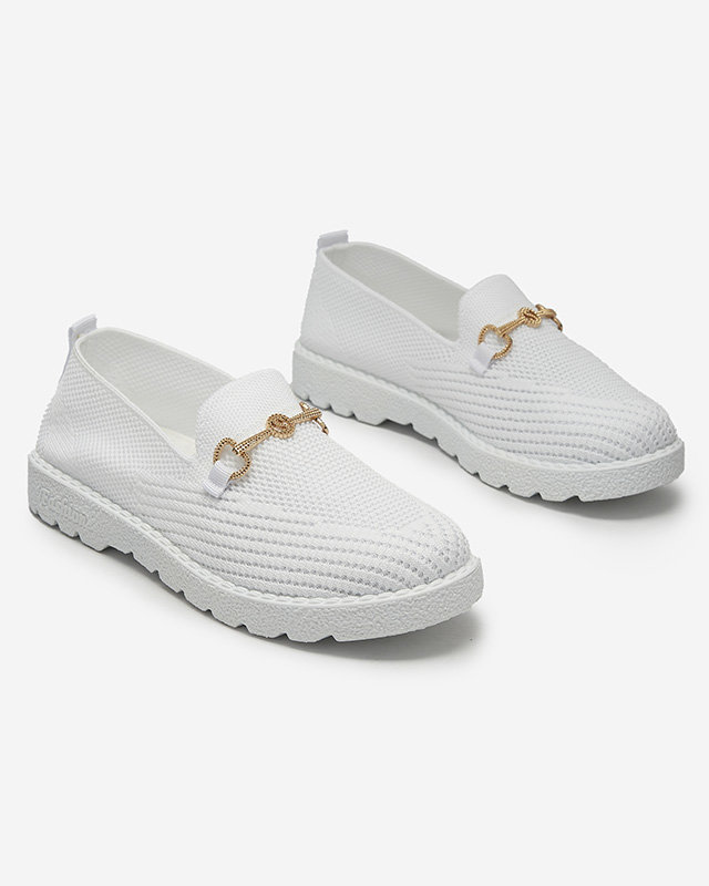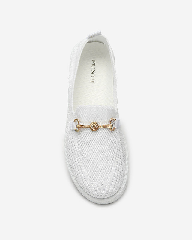 Белые женские кеды-слипы с золотым украшением Enelida - Обувь