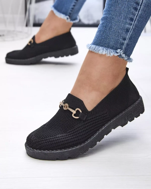 Черные женские кеды-слипы с золотым украшением Enelida - Обувь