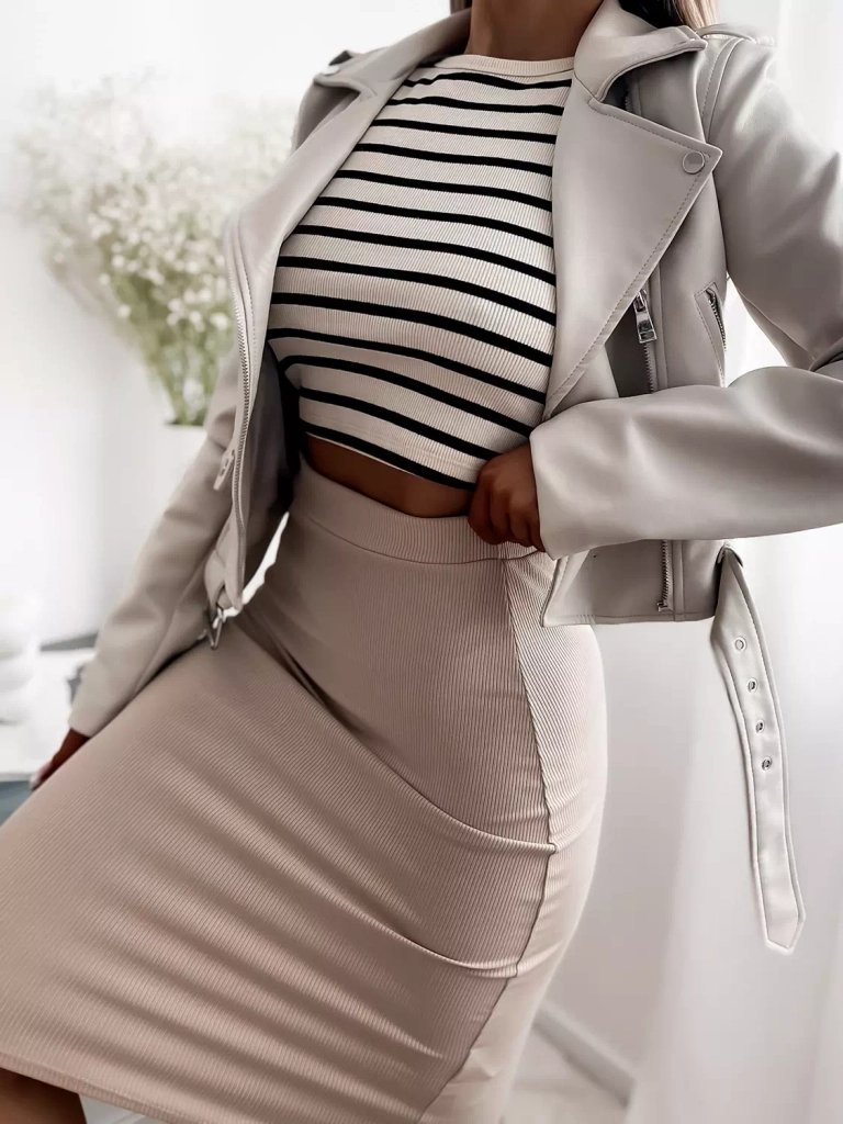 Женская бежевая ребристая юбка-карандаш - Одежда