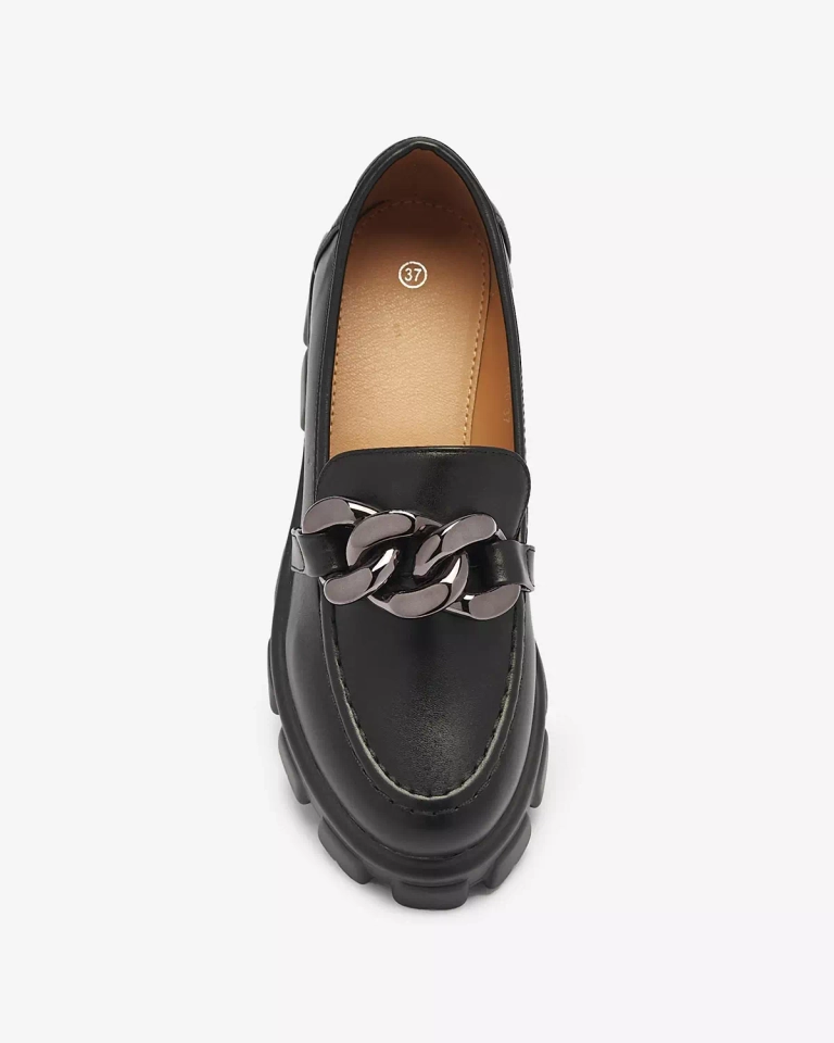 • Уникальные женские мокасины на толстой подошве. Пара выполнена из экокожи, на закругленном носу - пластиковый орнамент. Идеальны для повседневной носки!