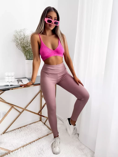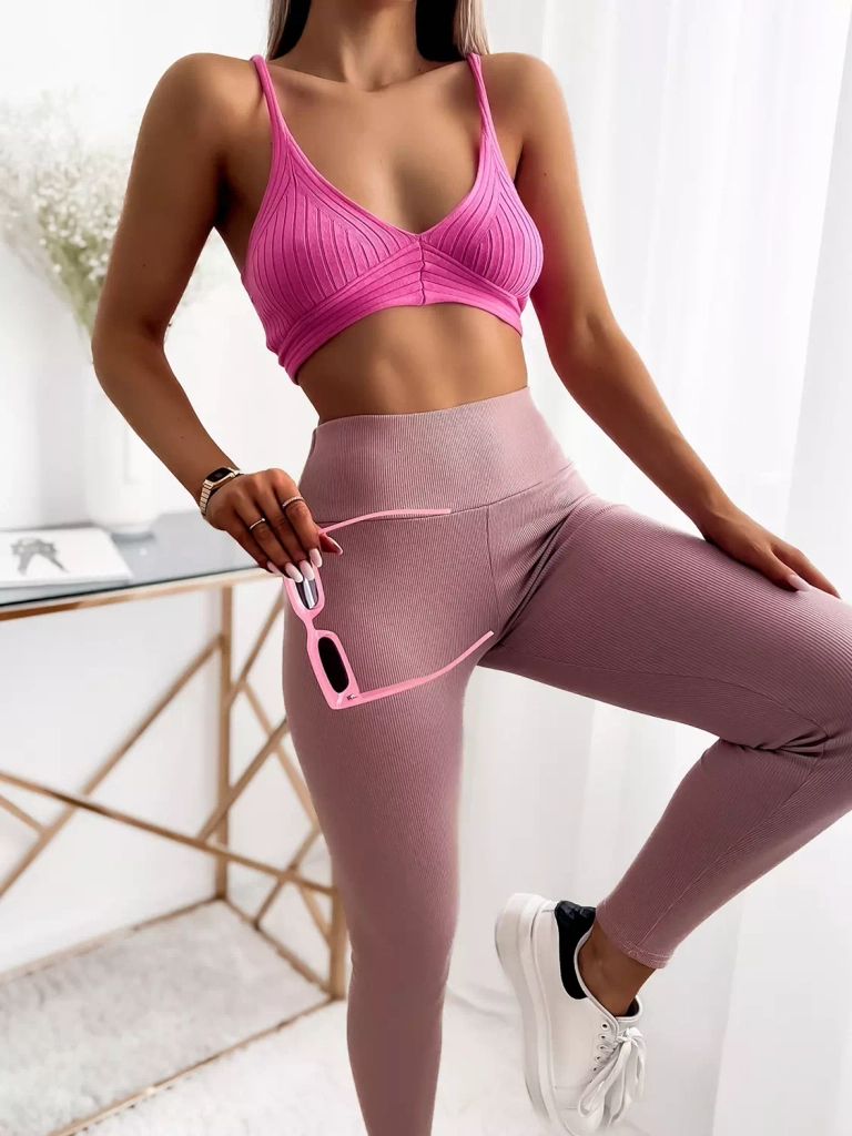 Женские ребристые леггинсы розового цвета - Одежда