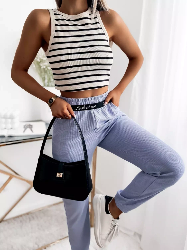 Фиолетовые женские брюки из ткани с тиснением - Одежда
