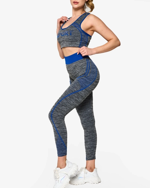 Серый женский спортивный комплект с кобальтовыми вставками - Одежда