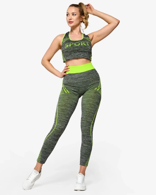 Серый женский спортивный комплект с неоново-желтыми вставками - Одежда