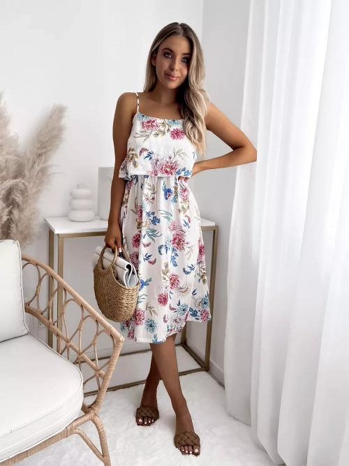 • Красивое женское мини-платье a'la hiszpanka, выполненное из ткани с цветочным узором. Модель имеет эластичную резинку у выреза горловины и под бюстом. Модель на регулируемых бретелях, сверху оборка. Идеальное платье для лета! ПРИМЕЧАНИЕ: Точность измерени