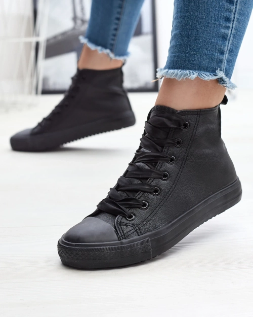 - Стильные женские спортивные кроссовки a'la sneakers на плоской подошве. Высокий верх на шнуровке выполнен из экологически чистой кожи. Середина обуви выложена тканью. Они станут отличным украшением повседневного стиля.