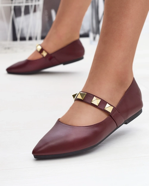 Бордовые женские балеринки на плоском каблуке с шипами Dejika - Обувь