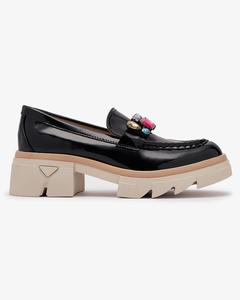 Лакированные черные мокасины с цветными камнями Sarix - Обувь