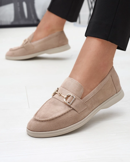 Бежевые женские мокасины с золотым украшением Neterri - Обувь