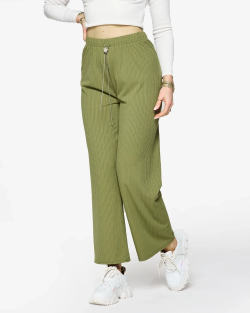 - Легкие женские широкие брюки, выполненные из ребристой ткани. Изделие имеет эластичный пояс и штанины, которые прекрасно подчеркнут талию. Must have этого сезона! ПРИМЕЧАНИЕ: Точность измерения (+/-) 1 см.
