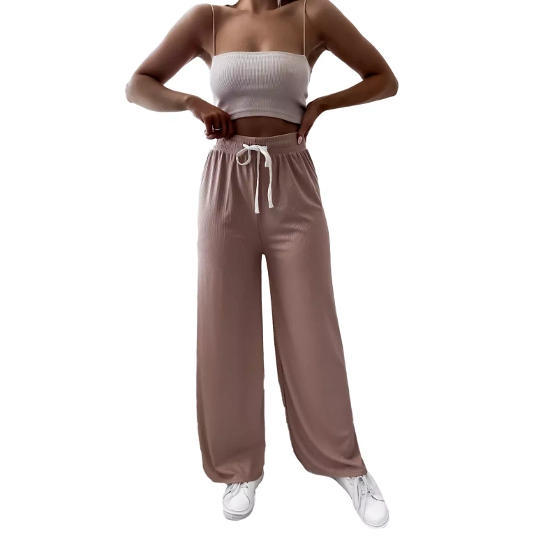 - Легкие женские широкие брюки-палаццо, выполненные из плиссированной ткани. Изделие имеет широкий эластичный пояс и завязки на штанинах, которые прекрасно подчеркнут талию. Must have этого сезона! ПРИМЕЧАНИЕ: Точность измерения (+/-) 1 см.