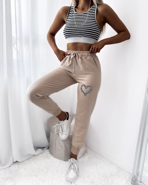 • Женские треники с 2 прорезными карманами, имеют эластичную талию и низ штанин. Брюки завязываются на талии, сбоку украшение из циркония в форме сердца. ПРИМЕЧАНИЕ: Точность измерения (+/-) 1 см.