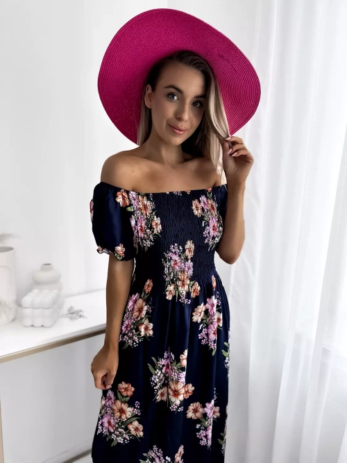 Женское темно-синее платье-миди с цветочным узором - Одежда