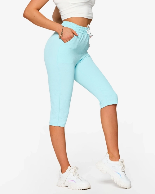 Светло-голубые тканевые женские шорты длиной 3/4- Одежда