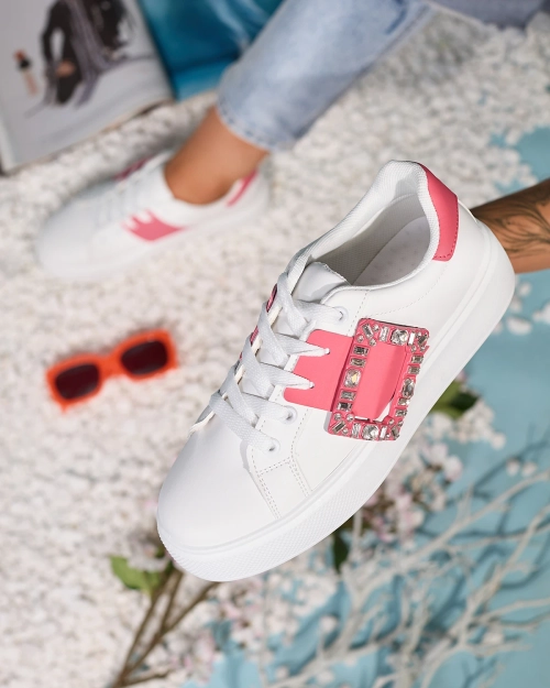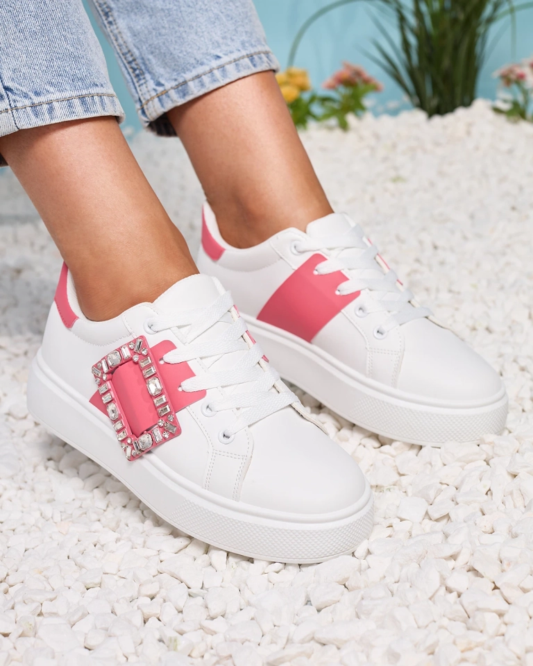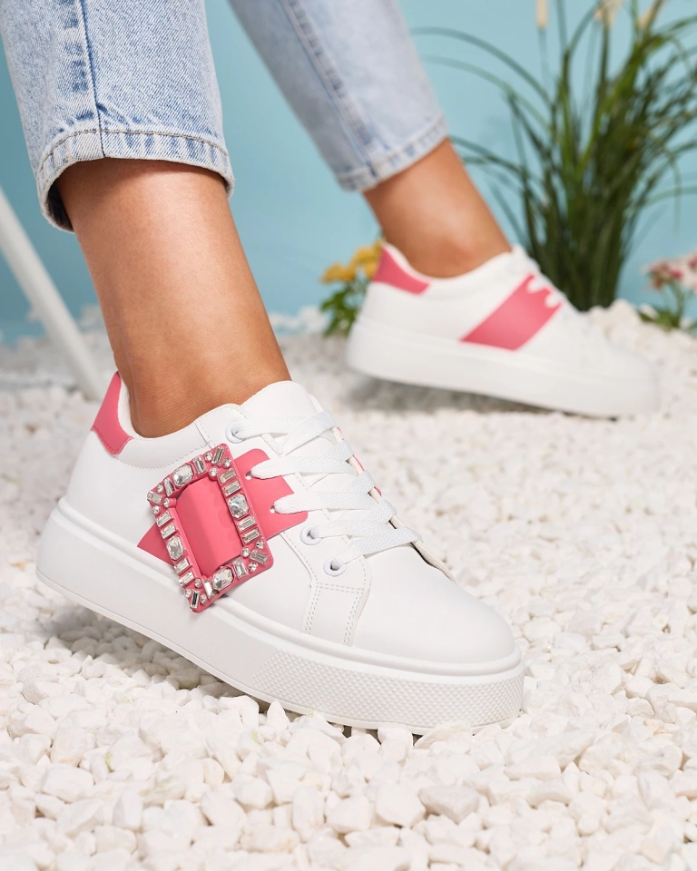 Белые и темно-розовые женские спортивные кроссовки Serbs - Обувь