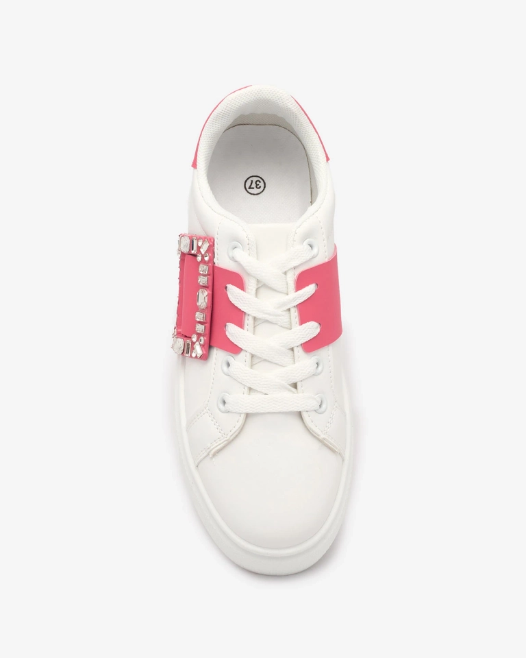 - Удобные женские спортивные кроссовки из экологичной кожи, имеют тканевую стельку. Модель на утолщенной подошве. Верх на шнуровке, украшен цирконами. Станут отличным дополнением к повседневному стилю!