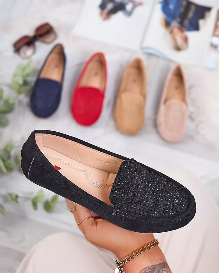- Модные женские мокасины украшены маленькими цирконами подходящего цвета. Верх выполнен из органической замши, внутри мягкая стелька. Супер дополнение к вашим повседневным нарядам!