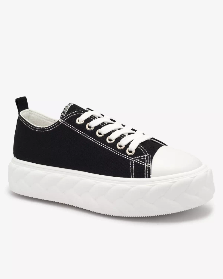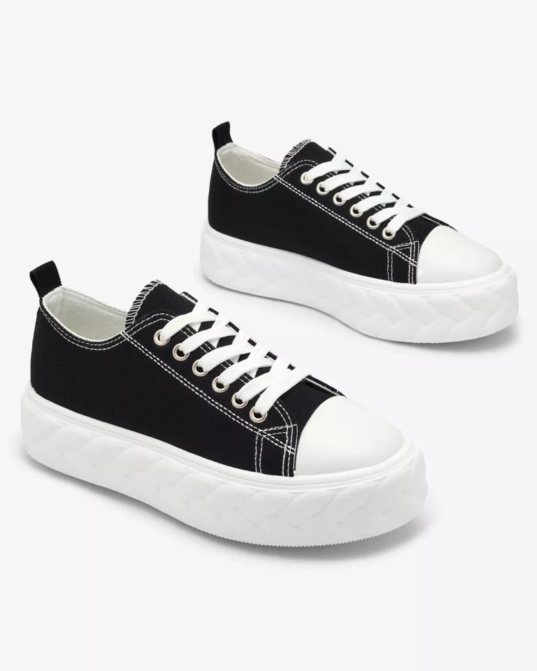 • Мега стильные женские однотонные кроссовки. Пара полностью выполнена из тканевого материала. Модель на толстой платформе, украшенной тиснением а'ля клетка. Верх застегивается на шнуровку. Отлично подойдут для повседневного стиля!