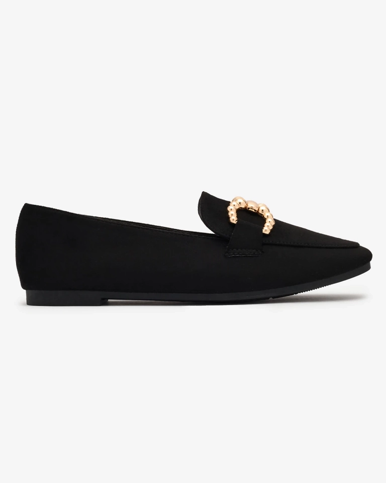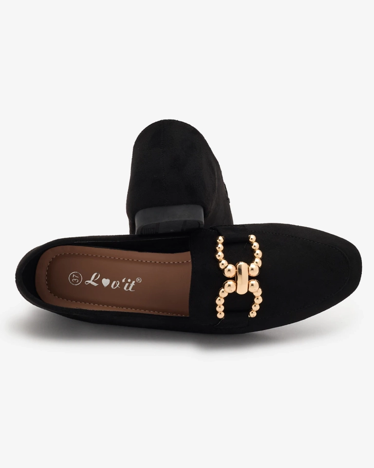 Royalfashion Черные женские мокасины из эко-кожи с украшением Bissefi
