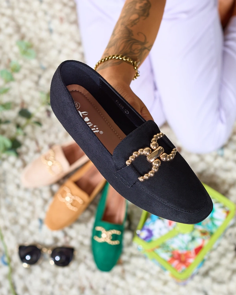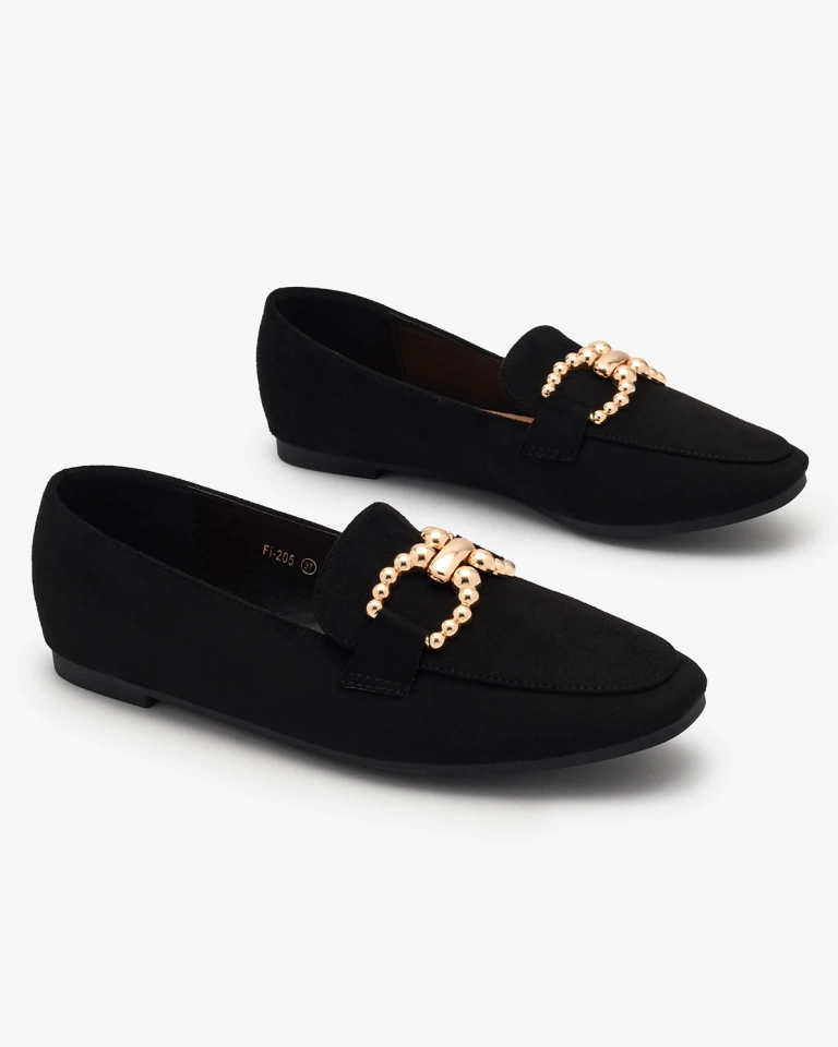 - Женские мокасины с золотым украшением на квадратном носке, модель выполнена из эко-кожи. Внутри мягкая стелька из экокожи. Идеальная основа для многих повседневных образов!