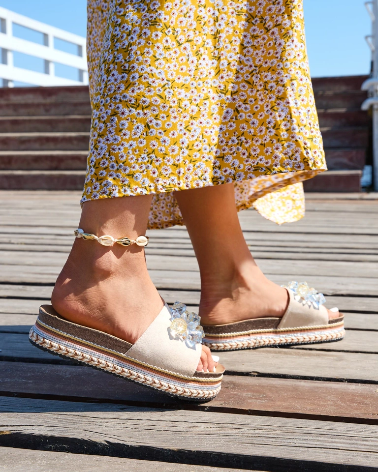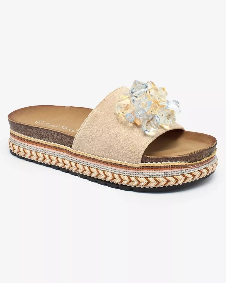 Royalfashion Женские шлепанцы с кристаллами бежевого цвета Bollah
