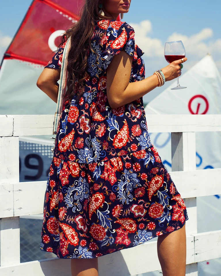 • Красивое женское красочное платье, выполненное из легкой вискозной ткани. Модель с цветочным узором, имеет вырез сердечком и короткие рукава. Идеально подходит для жарких летних дней. ПРИМЕЧАНИЕ: Точность измерения (+/-) 1 см.