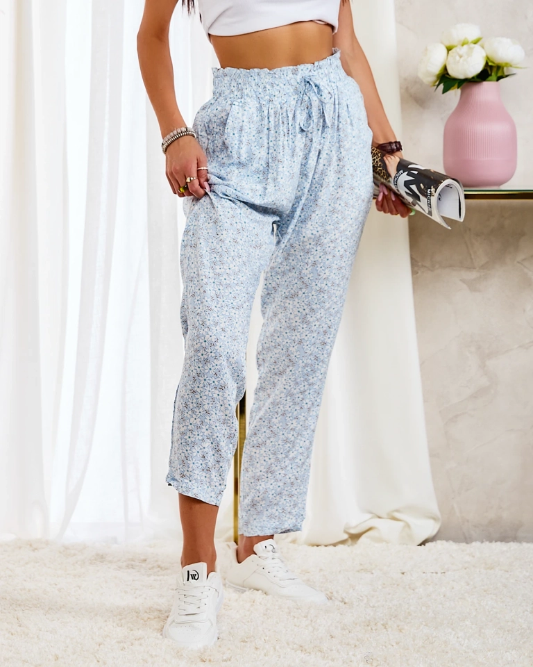- Легкие летние женские брюки из хлопка, украшенные цветочным принтом. Изделие имеет широкий эластичный пояс и завязки на талии. По бокам два прорезных кармана. Они идеально подходят для жарких летних дней. ПРИМЕЧАНИЕ: Точность измерения (+/-) 1 см.