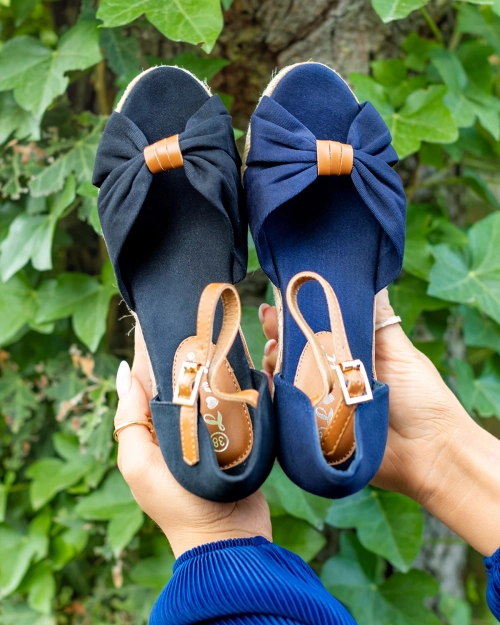 Royalfashion Женские темно-синие сандалии с бантом Текстиль Танго