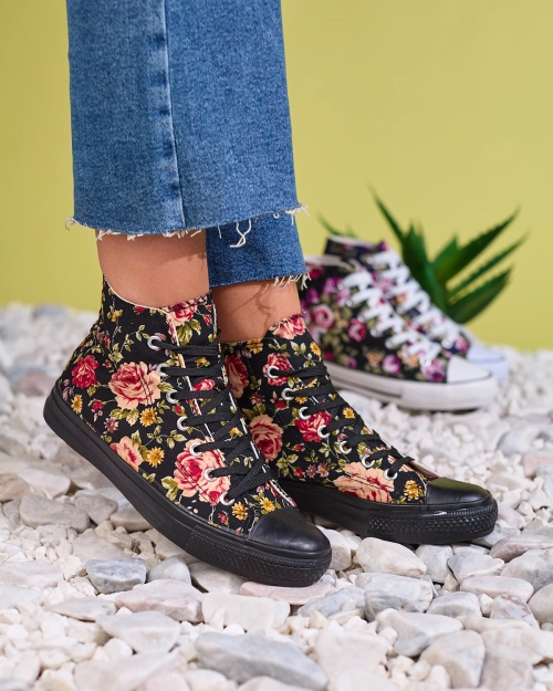 Royalfashion Женские высокие черные кеды с цветочным принтом Fahenna