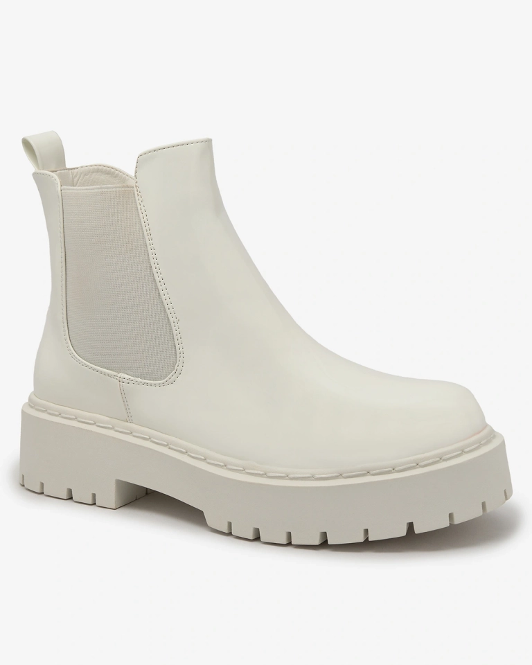 Royalfashion Белые лакированные женские сапоги без каблука Glossy Chic