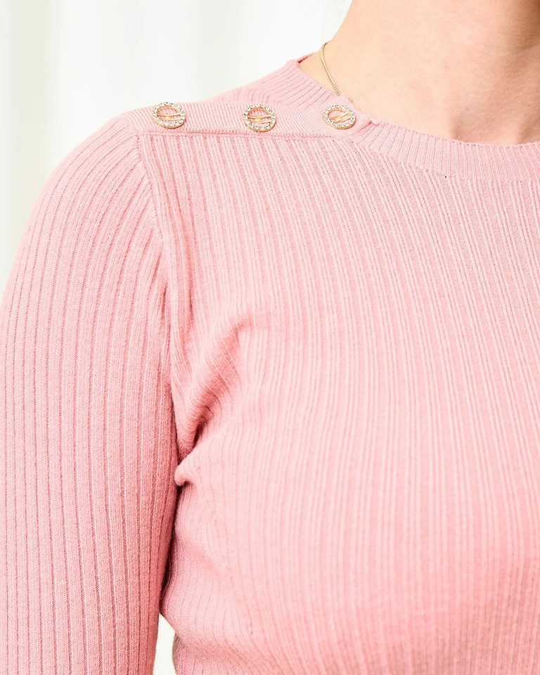 Royalfashion Розовый женский свитер с золотыми пуговицами