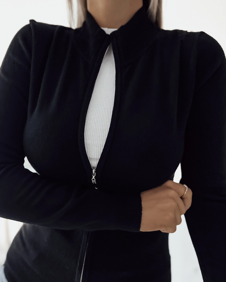 - Классический свитер - это воплощение элегантности и стиля. Его приталенный крой тонко подчеркивает женственный силуэт, создавая чрезвычайно модный образ. Застежка-молния позволяет легко надевать и снимать свитер, что добавляет ему практичности. Идеально п
