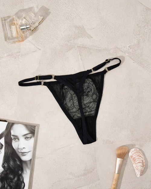 Royalfashion Черные кружевные женские трусики-стринги
