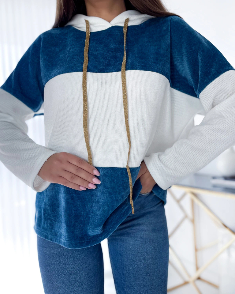 - Теплая женская толстовка оверсайз, выполненная из комбинации вискозы и эластана. Модель в двухцветную полоску, имеет капюшон и штанины, отделанные золотой нитью. Отличный выбор для повседневной носки! ПРИМЕЧАНИЕ: Точность измерения (+/-) 1 см. Размеры изм